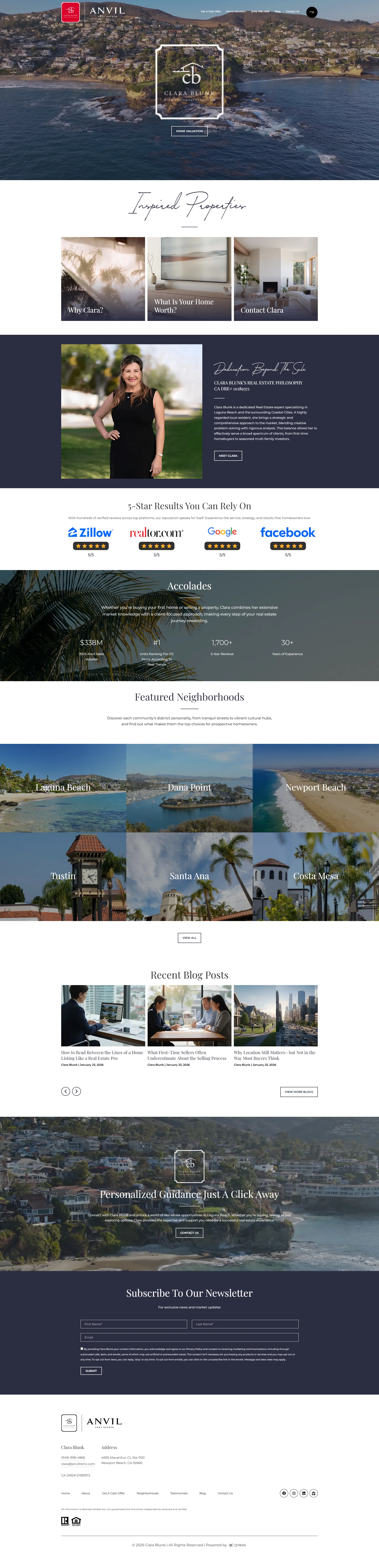 Clara Blunk is a trusted real estate expert specializing in Laguna Beach and the surrounding coastal communities. Known for her strategic, analytical approach and creative problem-solving, she serves clients ranging from first-time homebuyers to experienced multi-family investors. As a highly regarded local resident, Clara delivers guidance rooted in market insight, dedication, and a commitment that extends well beyond the sale.